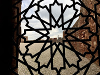 Outside the gate of the castle is a larger-than-life bronze statue of King Sancho I, whom Silves captured from the Moors in 1189 with the help of crusaders. Next to it is a shop where they sell wine, port and other products of the region, with a lovely terrace. The sofas are covered with woven rugs in beautiful colors. We have a view of the old Moorish city wall.